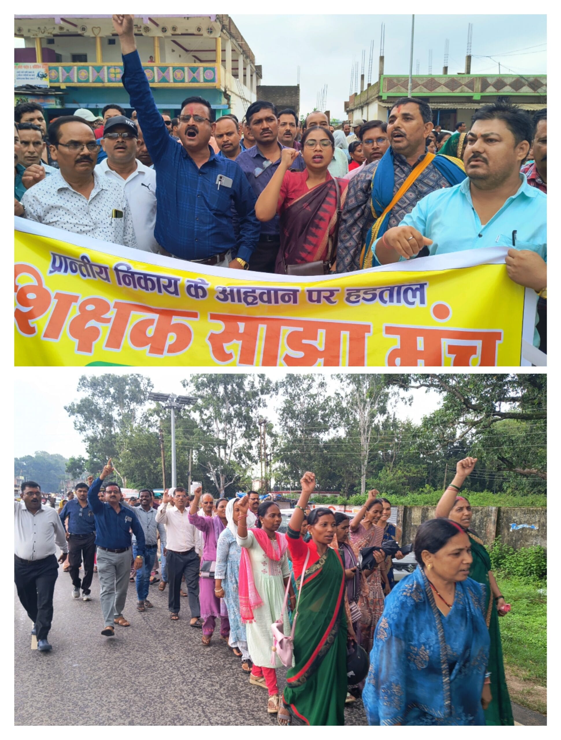 प्रतापपुर विकासखंड में शिक्षक साझा मंच के बैनर तले धरना प्रदर्शन एवं रैली