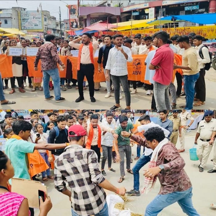 मौमिता देबनाथ को न्याय दिलाने के मांग पर सड़क उतरी विद्यार्थी परिषद कोरिया की टीम,किया ममता बनर्जी का पुतला दहन
