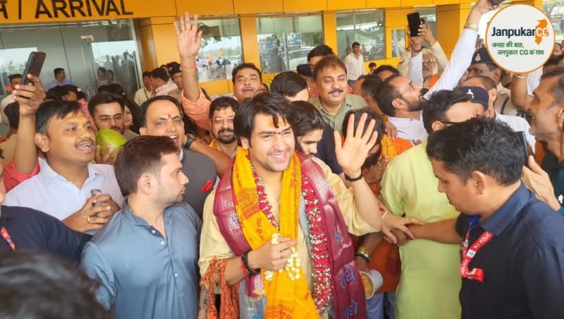 बिलासपुर में बागेश्वर धाम सरकार का दिव्य स्वागत, एयरपोर्ट से कार्यक्रम स्थल तक उमड़ा जनसैलाब