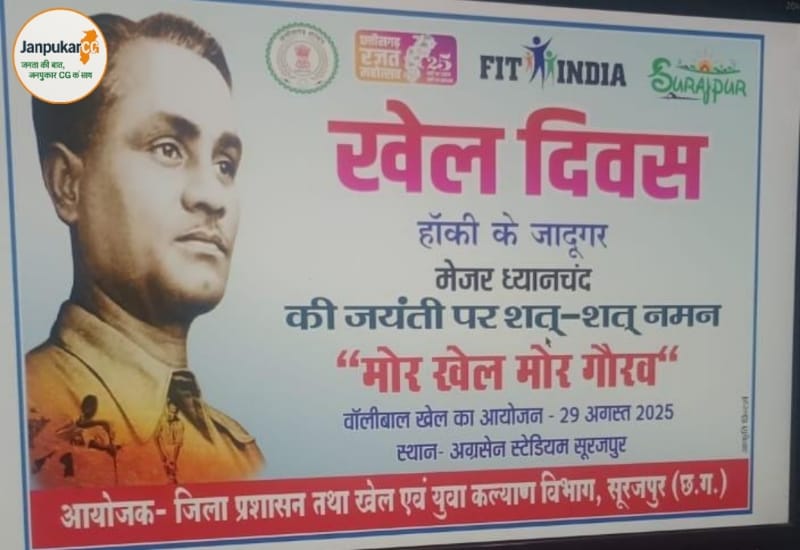 राष्ट्रीय खेल दिवस: सूरजपुर में वॉलीबॉल प्रतियोगिता का आयोजन कल
