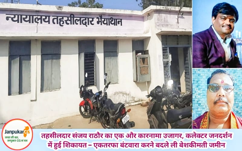 तहसीलदार संजय राठौर का एक और कारनामा उजागर, कलेक्टर जनदर्शन में हुई शिकायत – एकतरफा बंटवारा करने बदले ली बेशकीमती जमीन