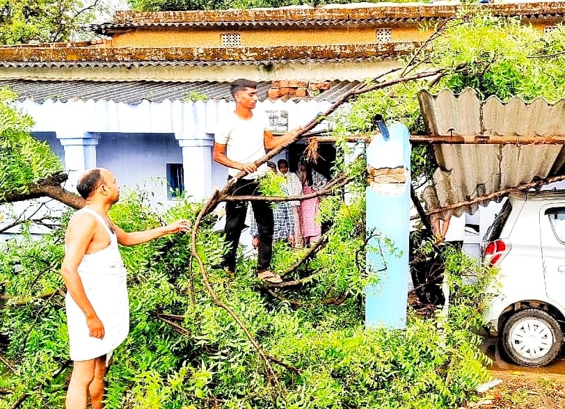 अचानक आंधी तूफान के कारण उखड़े पेड़, उखड़े सीट उड़े तेंदूपत्ते , ग्रामीणों ने देवालय के जल्द मरम्मत का दिया सुझाव ।