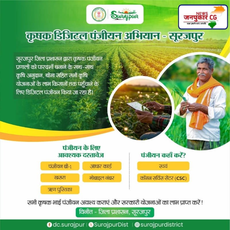 एग्रीस्टेक पोर्टल में कृषक पंजीयन के लिए सभी विकासखण्ड में लगाये जा रहे है शिविर
