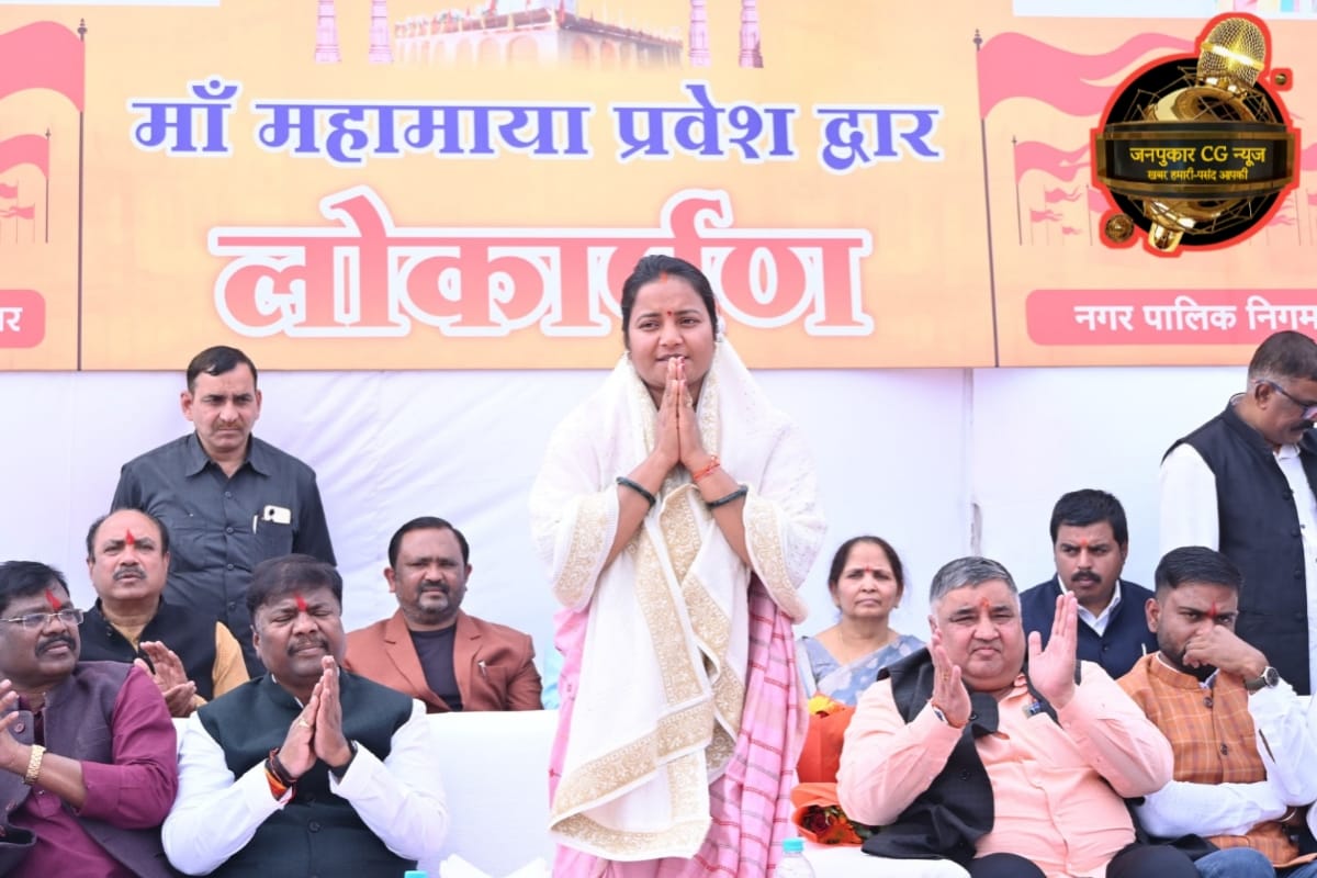 सूरजपुर : माँ महामाया मंदिर के प्रवेश द्वार के लोकार्पण में शामिल हुई कैबिनेट मंत्री लक्ष्मी राजवाड़े
