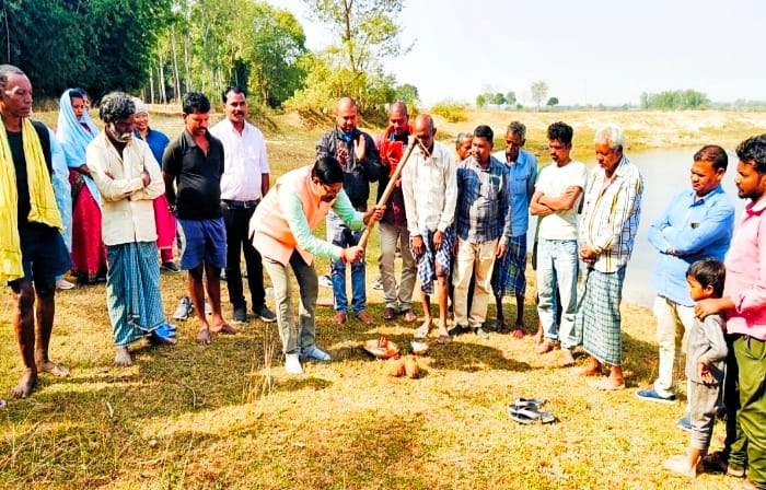 सत्यनारायण जायसवाल ने चबूतरा निर्माण का किया भूमिपूजन