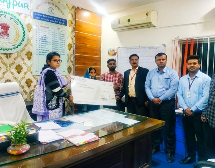 सूरजपुर : दिवंगत पंचायत सचिव की पत्नी को 30 लाख रुपये की आर्थिक सहायता राशि की गई प्रदान