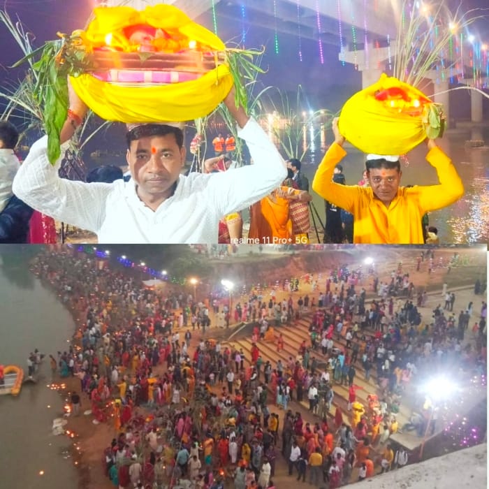 रेणुका नदी के छठ घाट पर मेले सा नजारा, व्रतियों ने डूबते सूर्य को दिया अर्घ्य