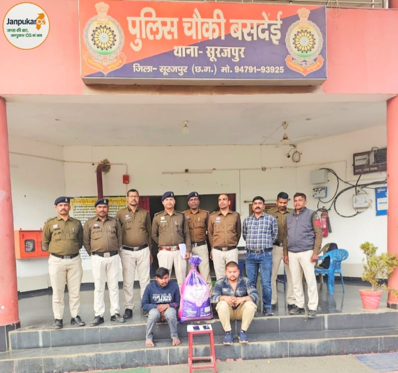 नशे के कारोबारियों पर सूरजपुर पुलिस का बड़ा प्रहार, 2 लाख 50 हजार कीमत के 10 किलो 850 ग्राम गांजा जप्त, 2 व्यक्ति गिरफ्तार