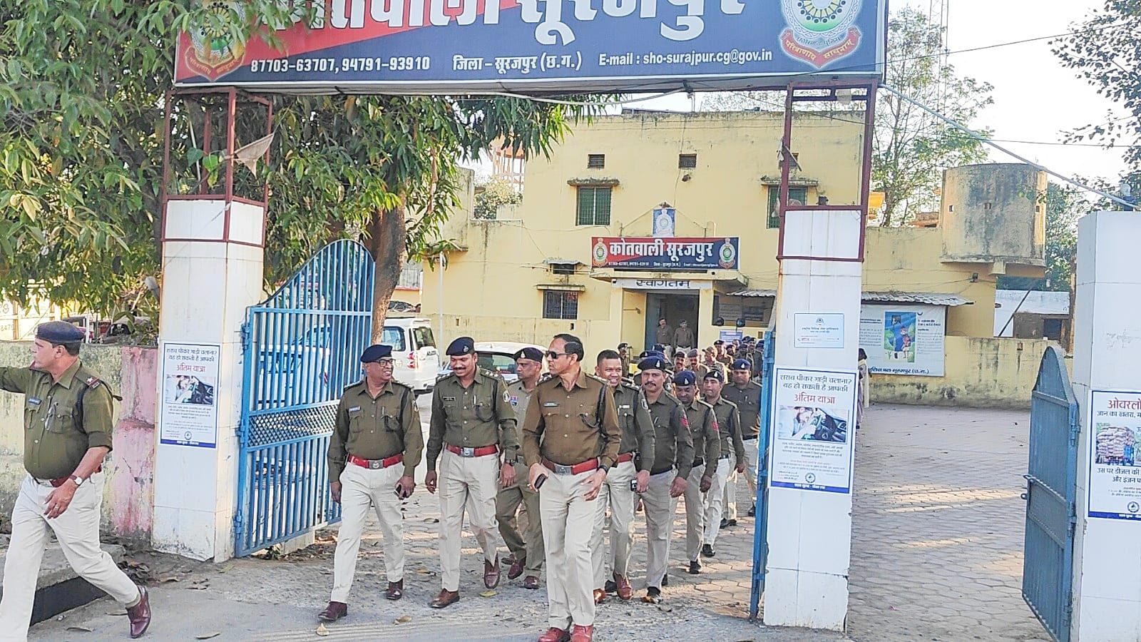 सूरजपुर में आगामी नगरीय निकाय चुनावों को निष्पक्ष एवं शांतिपूर्ण और सुव्यवस्थित तरीके से संपन्न कराने के उद्देश्य पुलिस अधिकारी व जवानों ने किया फ्लैग मार्च