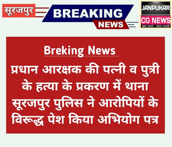 ब्रेकिंग – प्रधान आरक्षक की पत्नी व पुत्रीे के हत्या के प्रकरण में थाना सूरजपुर पुलिस ने आरोपियों के विरूद्ध पेश किया अभियोग पत्र