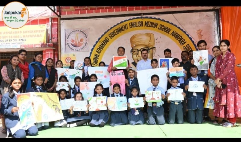 वंदे मातरम् गीत की 150वीं वर्षगांठ पर पीएम श्री स्वामी आत्मानंद शासकीय उत्कृष्ट (अंग्रेजी माध्यम) विद्यालय नवापारा में किया गया आयोजन