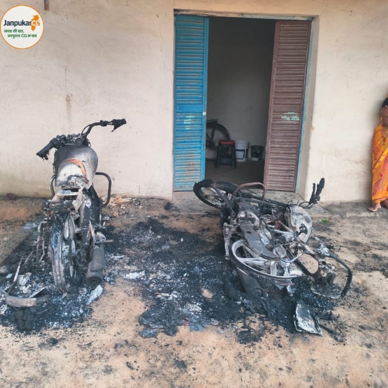 घर के बाहर खड़ी दो मोटरसाइकिलों में अज्ञात व्यक्ति ने लगाई आग