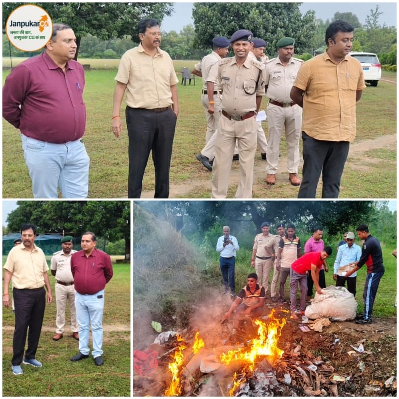 सूरजपुर पुलिस ने 40 लाख रूपये कीमत के नशीली गांजा, अफीम व डोडा को किया नष्ट, डीआईजी व एसएसपी सूरजपुर ने की कार्यवाही