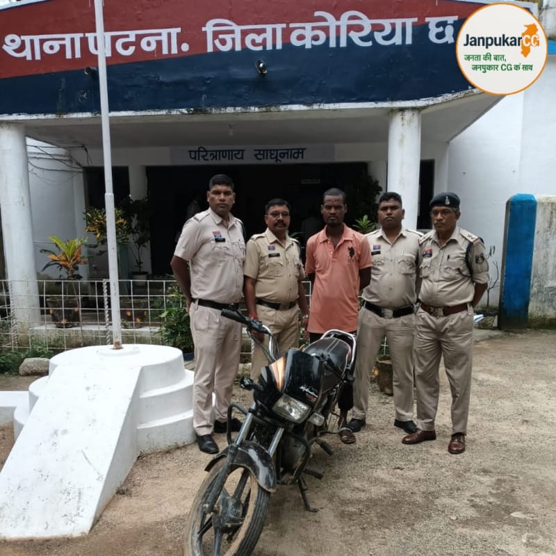 कोरिया पुलिस ने मोटर साइकिल चोर को चोरी की बाइक सहित किया गिरफ्तार