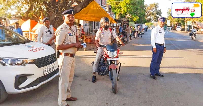 15 वाहन चालकों पर की गई चलानी कार्यवाही जिसमें तीन पुलिसकर्मी भी शामिल