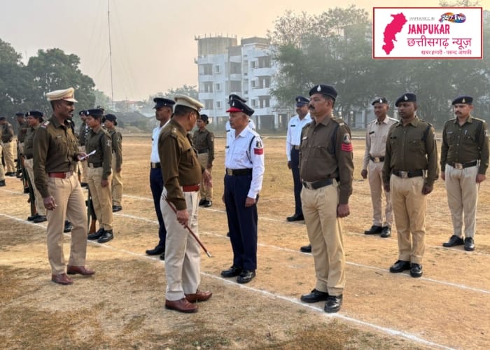 नवपदस्थ पुलिस अधीक्षक कोरिया श्री रवि कुमार कुर्रे, आईपीएस ने किया जनरल परेड का निरीक्षण