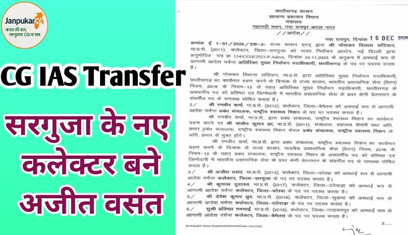 CG IAS Transfer: 11 आईएएस अधिकारियों के तबादले, अजीत वसंत बने सरगुजा के नए कलेक्टर