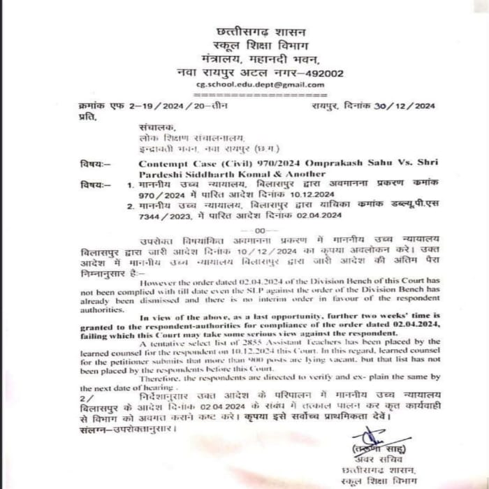 रायपुर : ख़त्म हुई B.Ed सहायक शिक्षकों की उम्मीद! सरकार ने दिया DPI को आदेश…