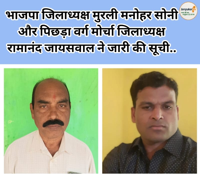 भाजपा पिछड़ा वर्ग मोर्चा सूरजपुर की जिला कार्यसमिति घोषित: भैयाथान से ललित राजवाड़े और बीरेंद्र साहू को मिली महत्वपूर्ण जिम्मेदारी