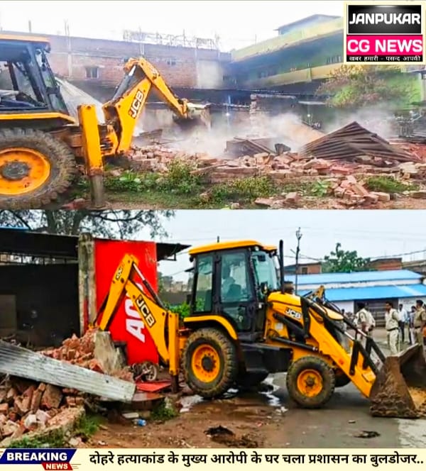 सूरजपुर ब्रेकिंग : दोहरे हत्याकांड के मुख्य आरोपी के घर चला प्रशासन का बुलडोजर..