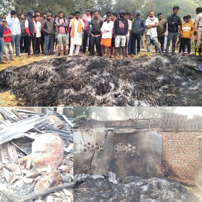 सूरजपुर – किसान के घर में लगी आग, पांच मवेशी सहित लाखों का धान जलकर खाक