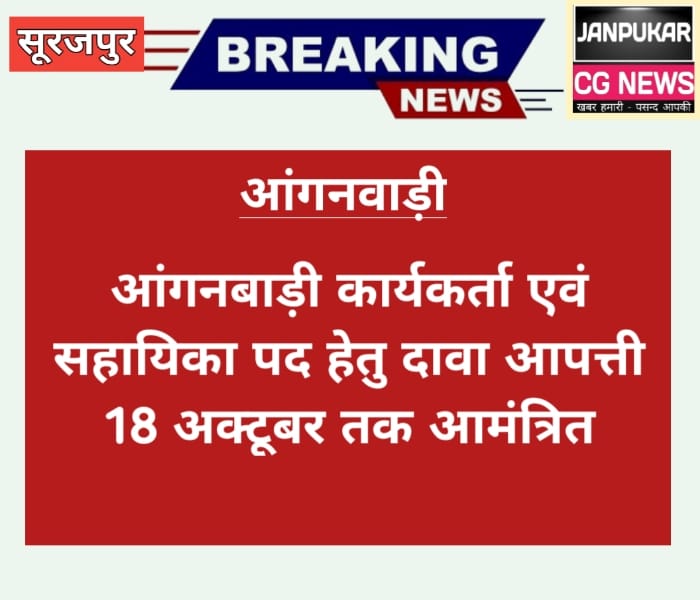 सूरजपुर – आंगनबाड़ी कार्यकर्ता एवं सहायिका पद हेतु दावा आपत्ती