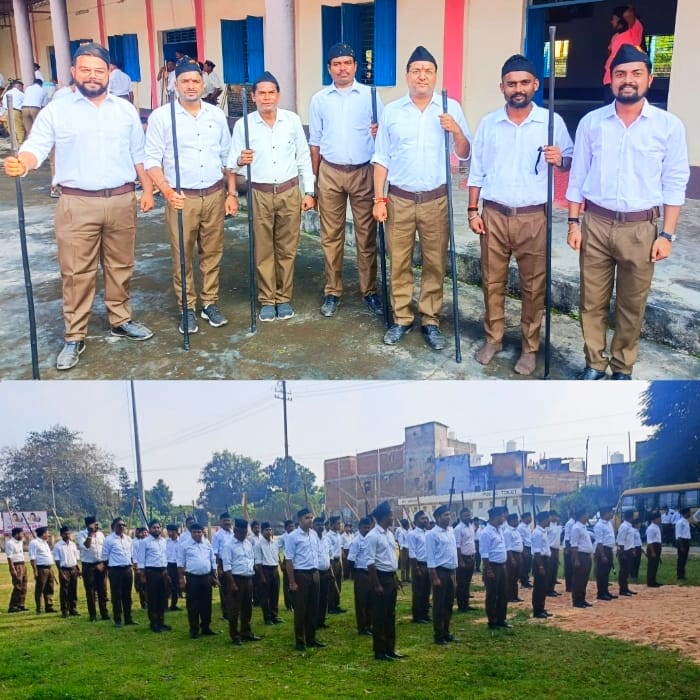 सूरजपुर : नवरात्र के अवसर पर राष्ट्रीय स्वयंसेवक संघ ने किया पथ संचलन