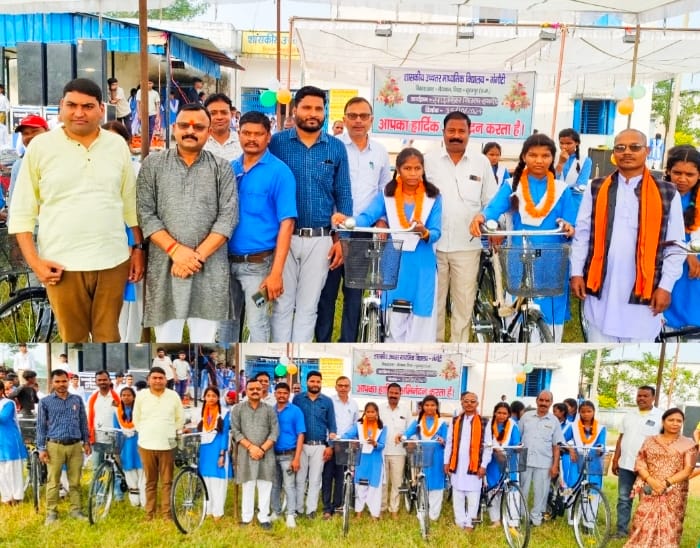 शासकीय उच्चतर माध्यमिक विद्यालय गंगौटी में साइकिल वितरण कार्यक्रम