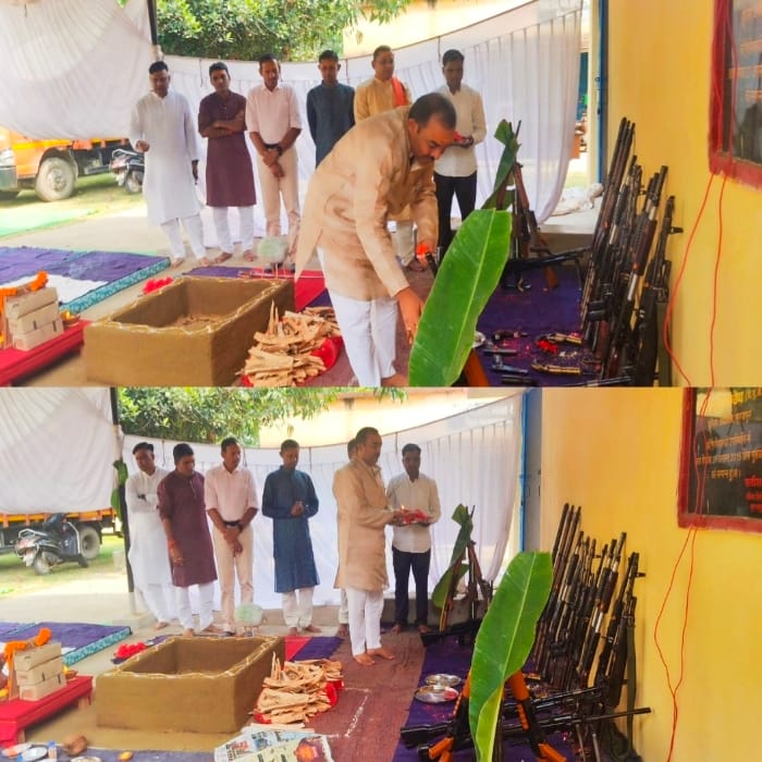विजयादशमी पर्व पर डीआईजी/एसएसपी सूरजपुर ने किया पुलिस लाईन में शस्त्र पूजन