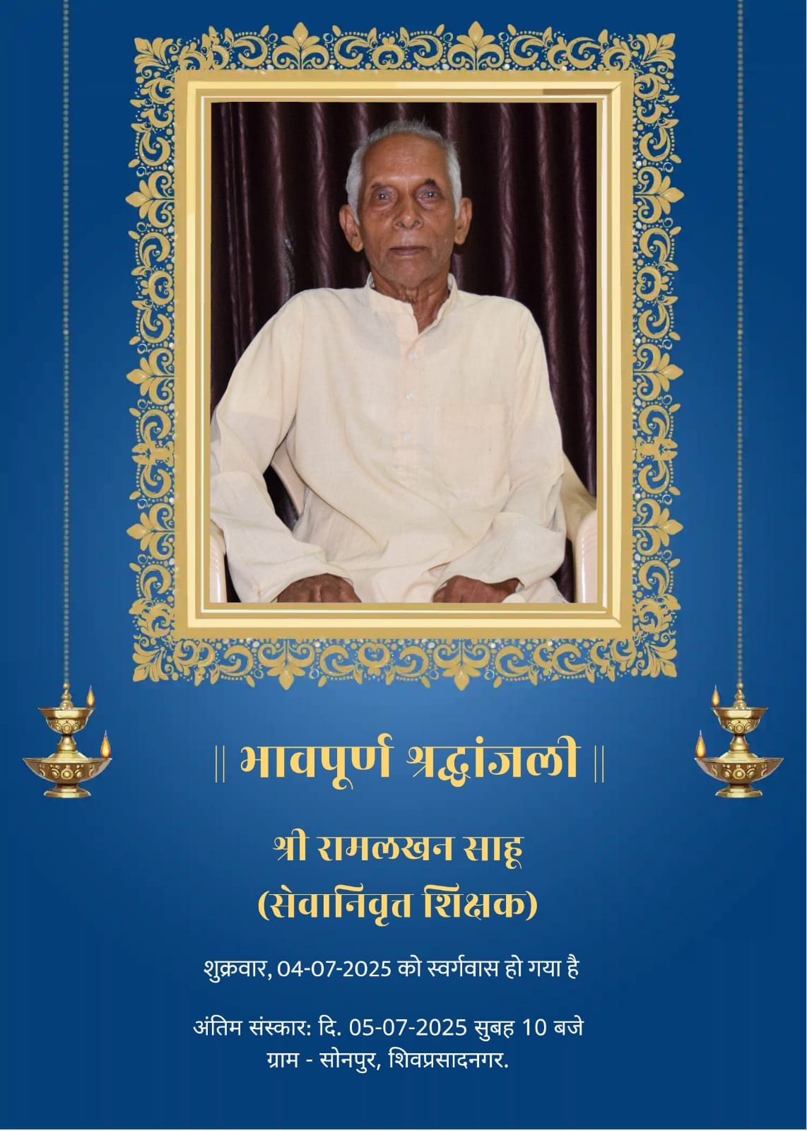 सेवा का दीप बुझा: रामलखन साहू सर नहीं रहे, गांव में पसरा मातम