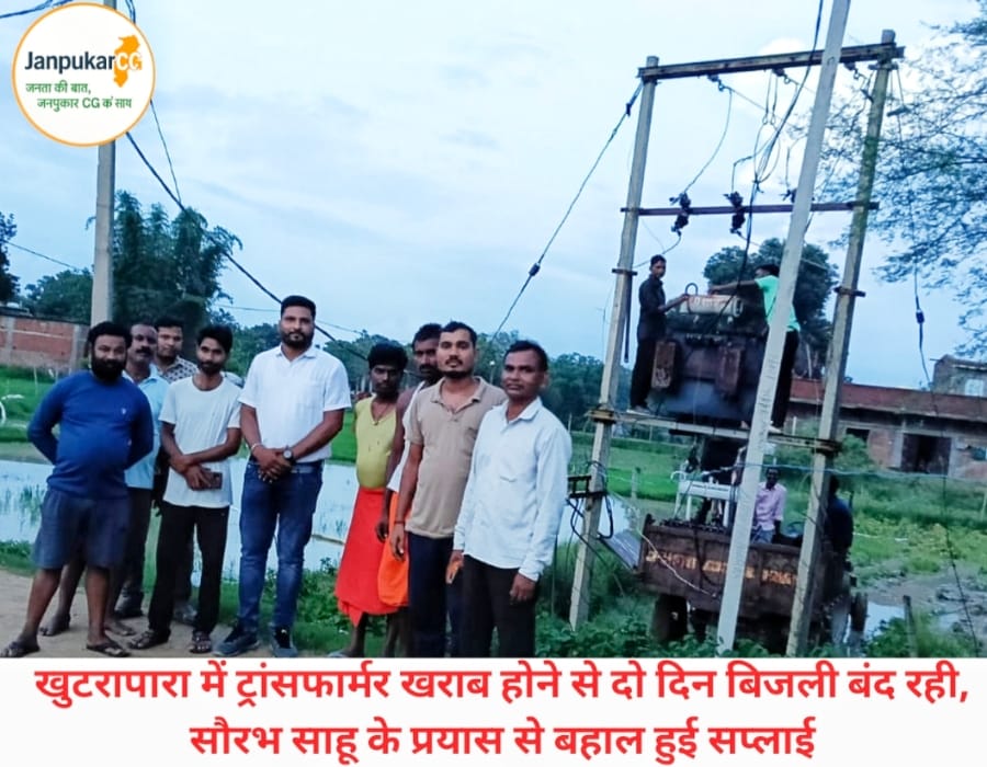 खुटरापारा में खराब ट्रांसफार्मर बदला गया, जनप्रतिनिधि सौरभ साहू की पहल लाई राहत