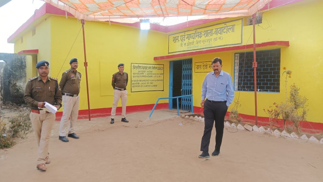 डीआईजी/एसएसपी सूरजपुर ने तृतीय चरण के मतदान दल का जायजा लेने दुरस्थ मतदान केन्द्र पहुंचे