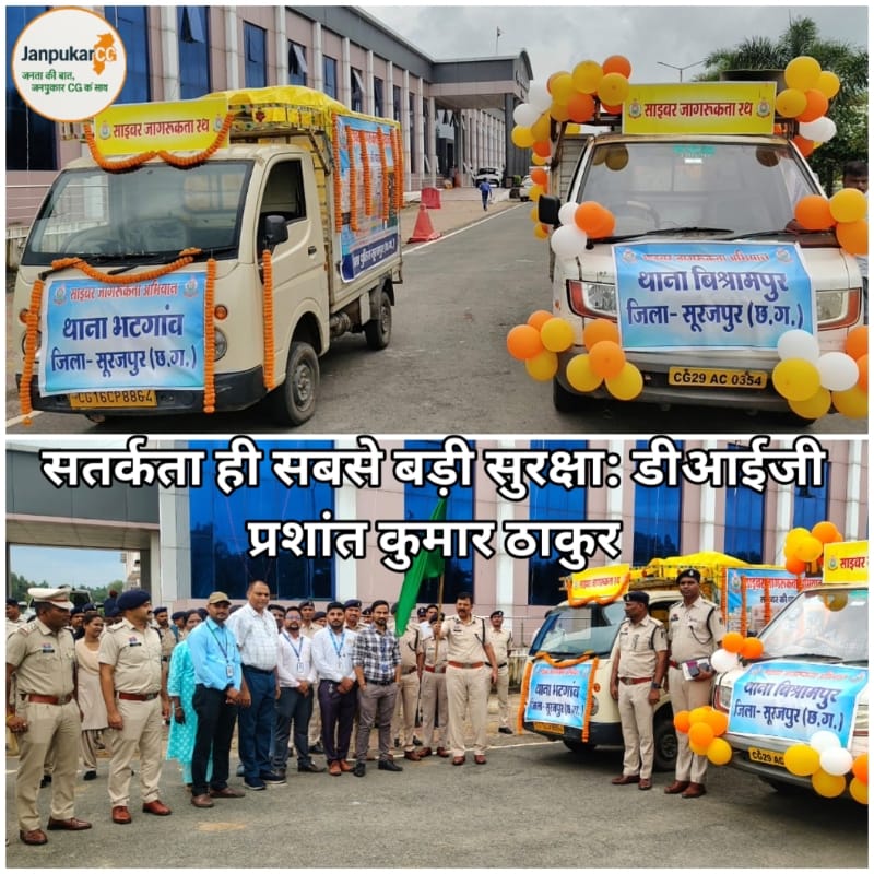 डीआईजी व एसएसपी सूरजपुर ने साइबर जागरूकता रथ को हरी झंडी दिखाकर किया रवाना
