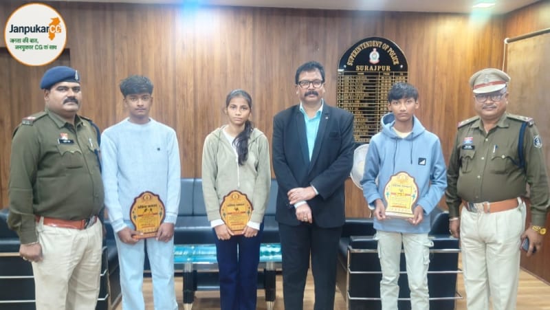 सूरजपुर पुलिस परिवार के बच्चों ने खेलों में हासिल किया गोल्ड मेडल, जूडो व रिले रेस प्रतियोगिता के नेशनल में बनाई जगह, डीआईजी व एसएसपी सूरजपुर ने किया सम्मानित