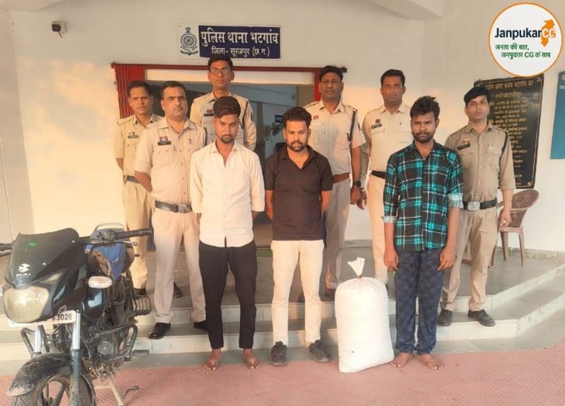 नशे के कारोबारियों पर सूरजपुर पुलिस का बड़ा प्रहार, 2 लाख 50 हजार कीमत के 12 किलो गांजा जप्त, 3 व्यक्ति किए गए गिरफ्तार।