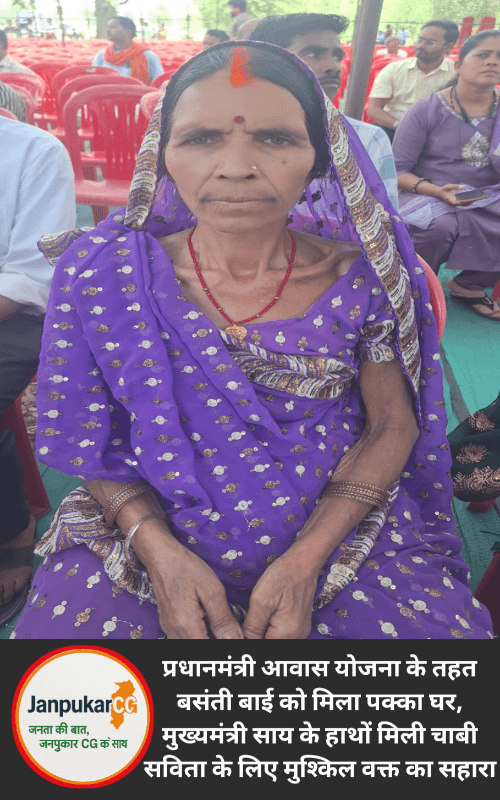 प्रधानमंत्री आवास योजना के तहत बसंती बाई को मिला पक्का घर, मुख्यमंत्री साय के हाथों मिली चाबी