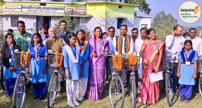मंत्री श्रीमती लक्ष्मी राजवाड़े ने अजबनगर में सायकल वितरण कर विद्यार्थियों को किया प्रोत्साहित