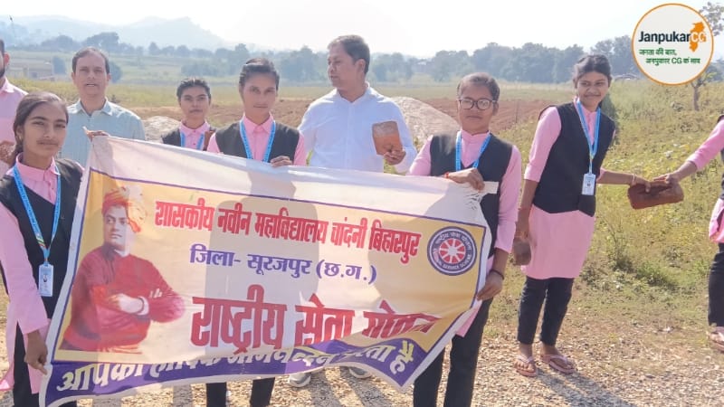 चांदनी बिहारपुर कॉलेज के स्वयंसेवकों ने किया श्रमदान, फुलवारी की सुरक्षा हेतु ईंटा ढोकर बनाया घेरा